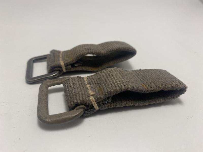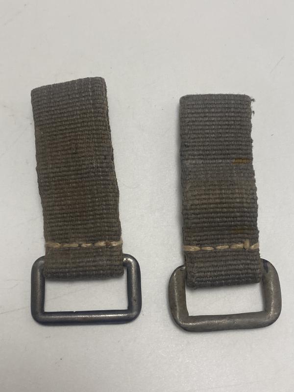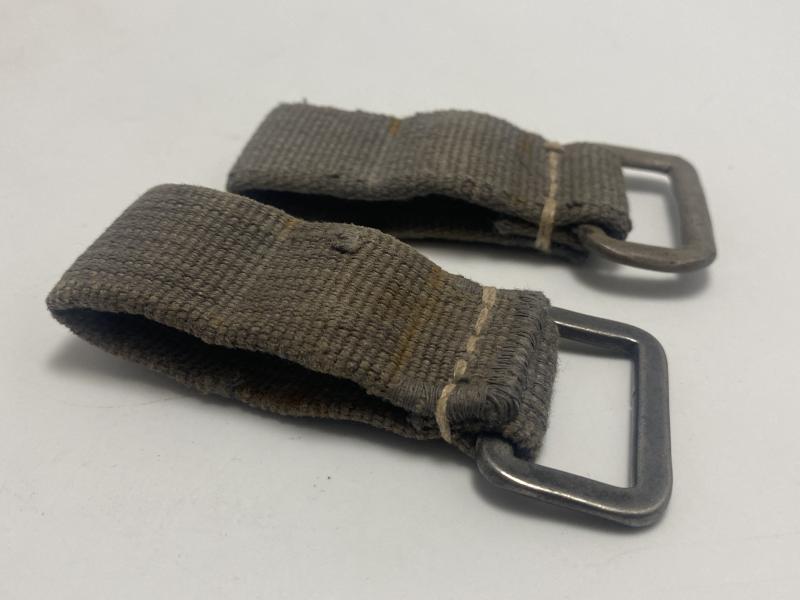 Original pair of D rings produced in blue webbing for German Paratroopers. These D rings were used to attach equipment to the belt and often used quick release clips to obtain easy access. Rare items, seldom seen. This sale is for both D rings pictured.
