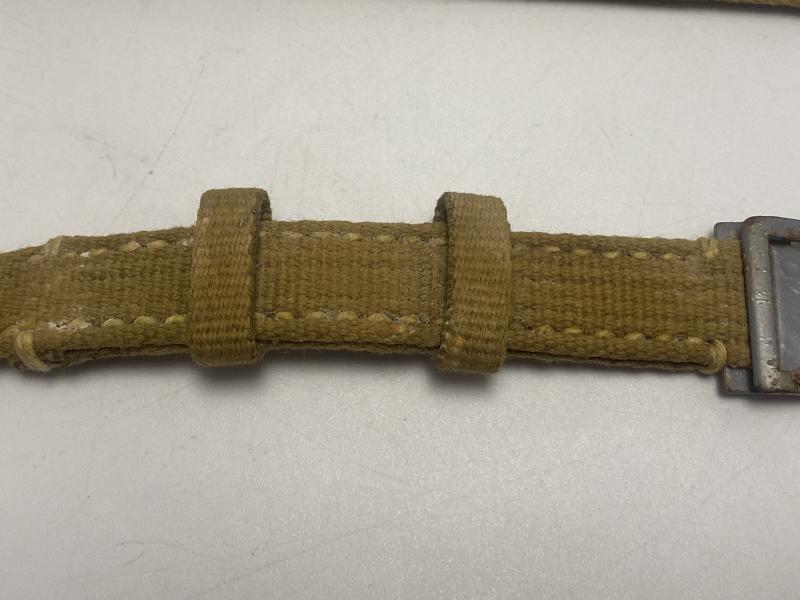Original German army DAK A-Frame mess tin strap Lux marked. In good condition, roughly 63cm long.