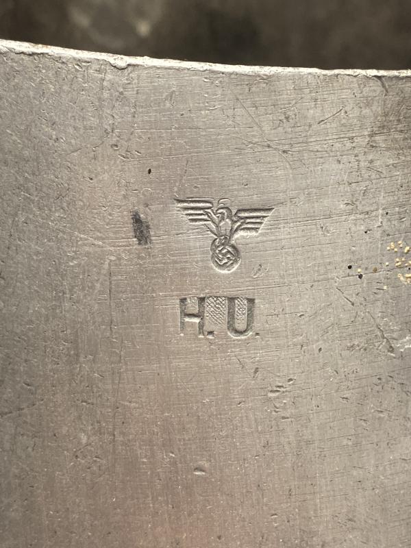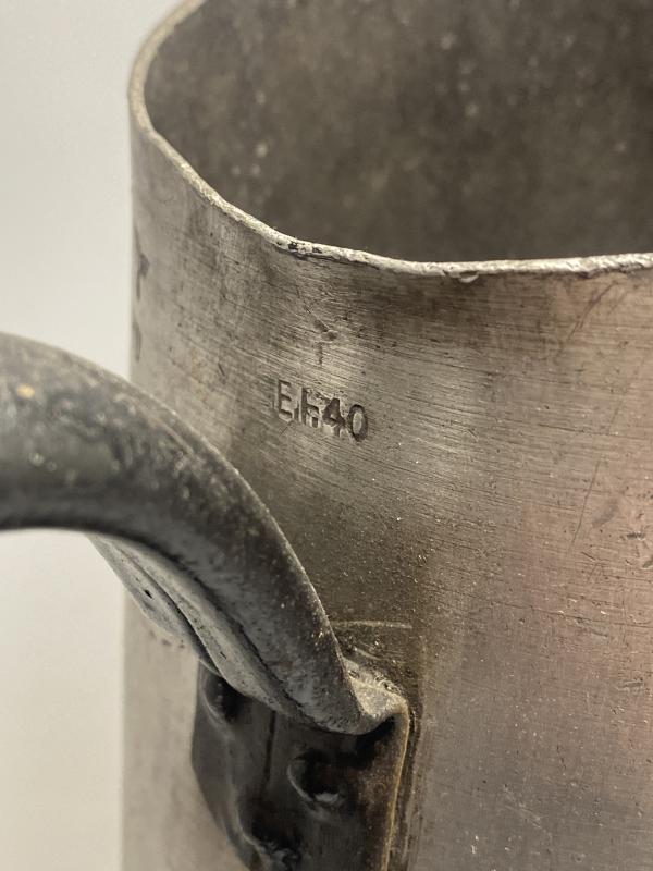 Original German army jug for field kitchen, approx 5L capacity. Several third Reich period markings present. Made of aluminium with a steel handle. In good shape overall with expected wear and tare.