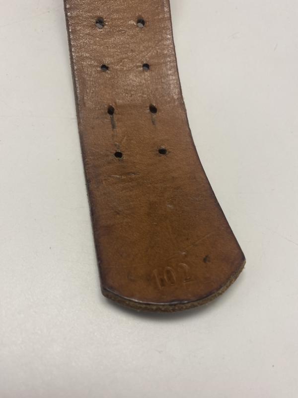 Original unissued 102cm tongueless combat belt, marked gfg43. Near perfect condition.