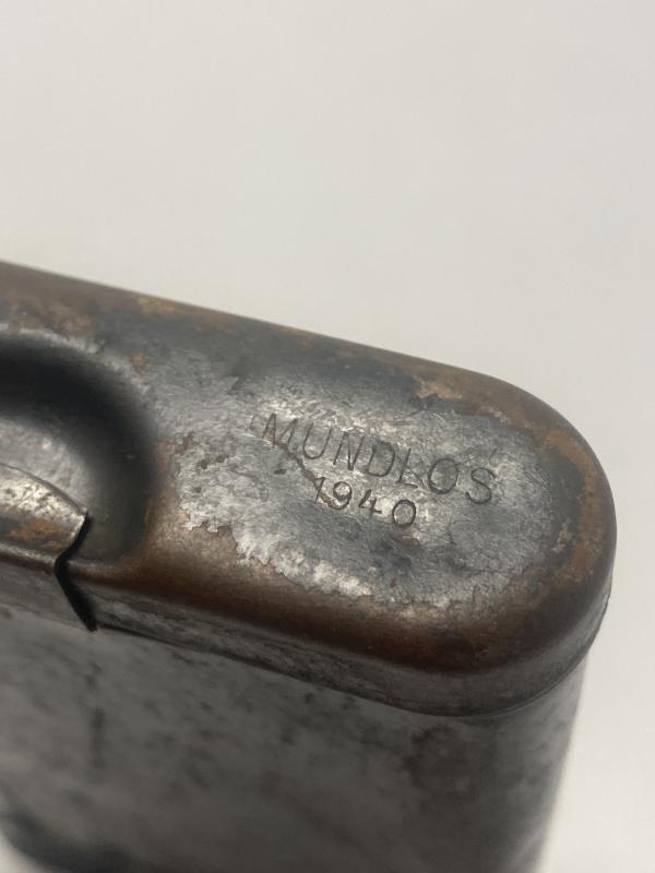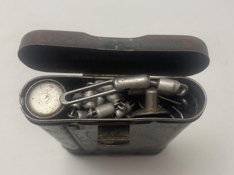 Original K98k Rifle cleaning kit complete with chain, oiler bottle (marked Appel1938) two brushes, cloth and spoon. A nice field used piece.