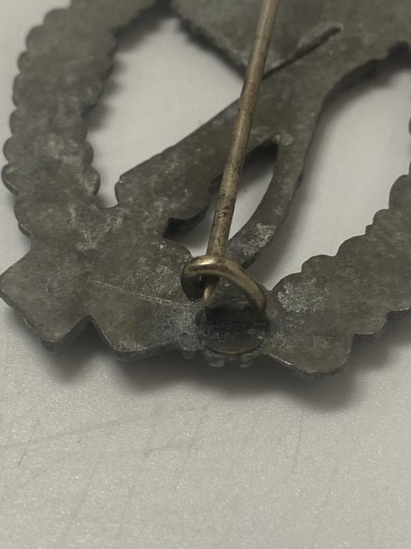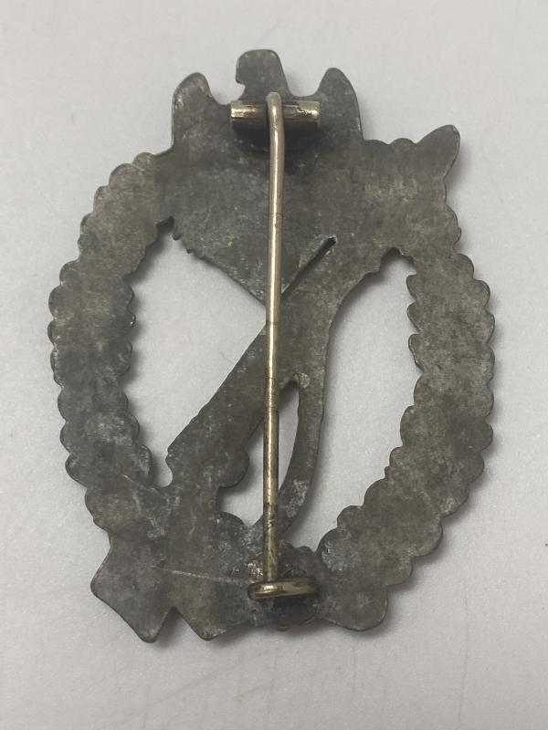 Original Infantry Assault badge in the silver grade. This type appears to be an unmarked Schuco variant. In good shape without damage.
