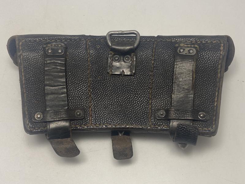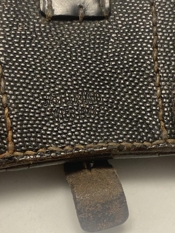Original WW2 German K98k leather ammo pouch dated 1941. One of three internal dividers present. A nice honest pouch.