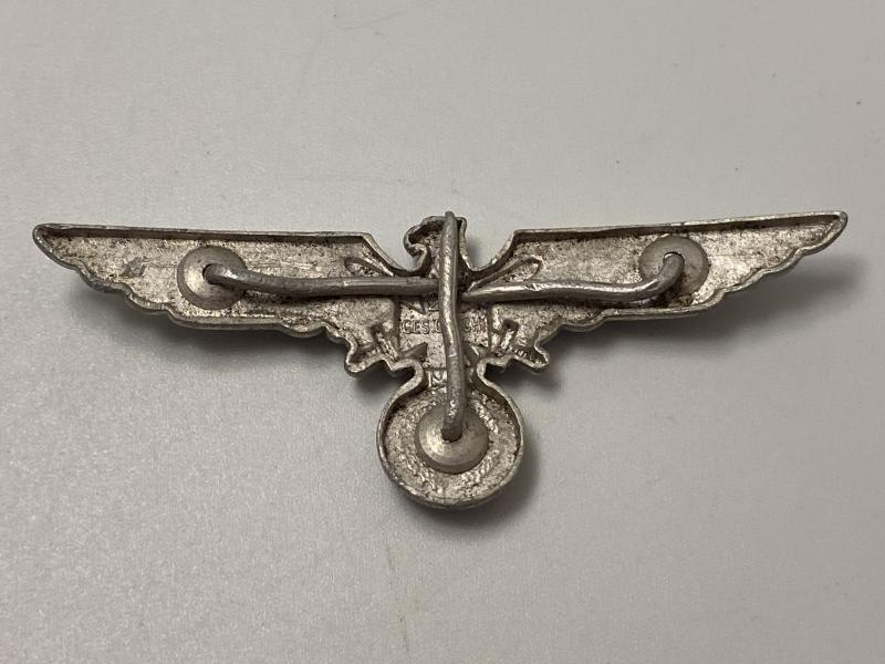 Original aluminium Veterans cap eagle complete with maker mark and pins. Some fading of the painted hakenkreuz on the eagle.