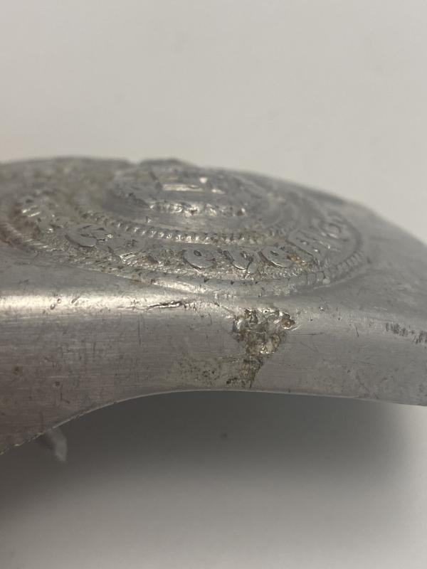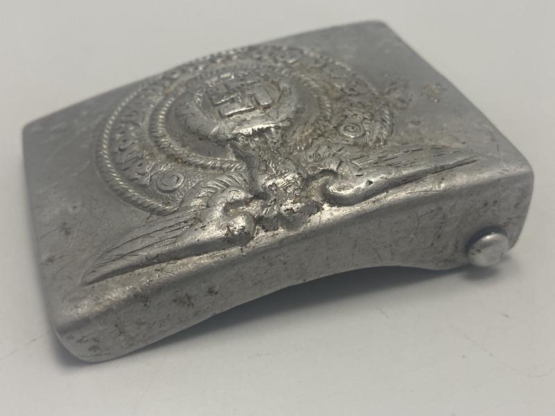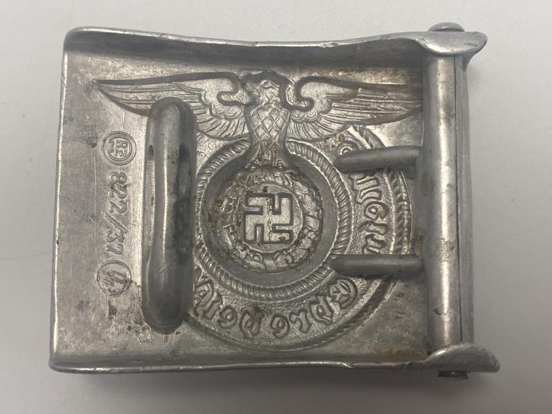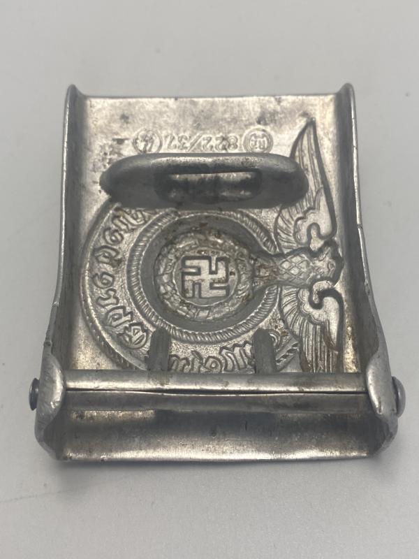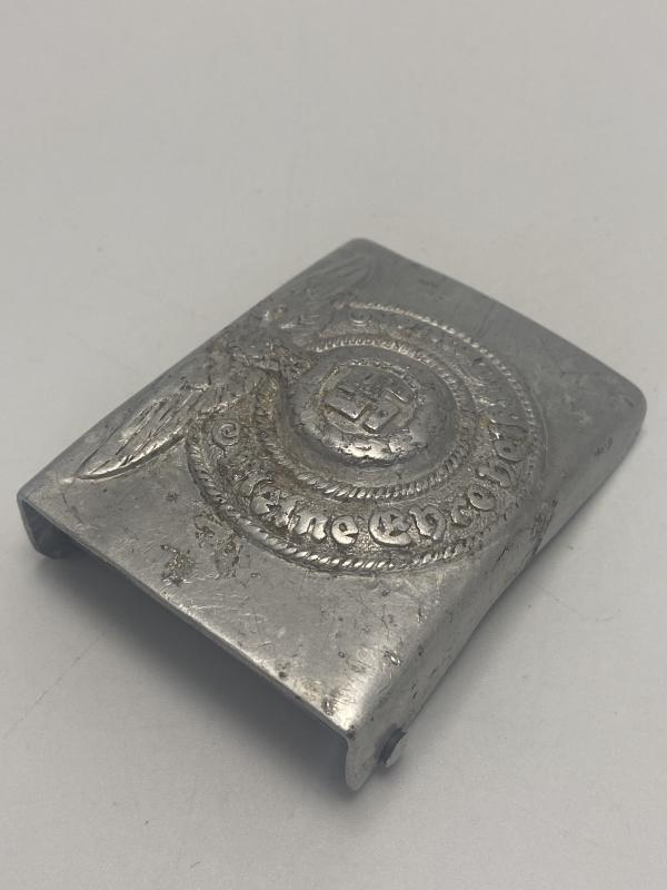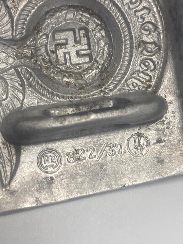 Original Waffen SS aluminium Belt buckle made by Richard Sieper & Sohn with code 822/37. Combat worn with minor corrosion.