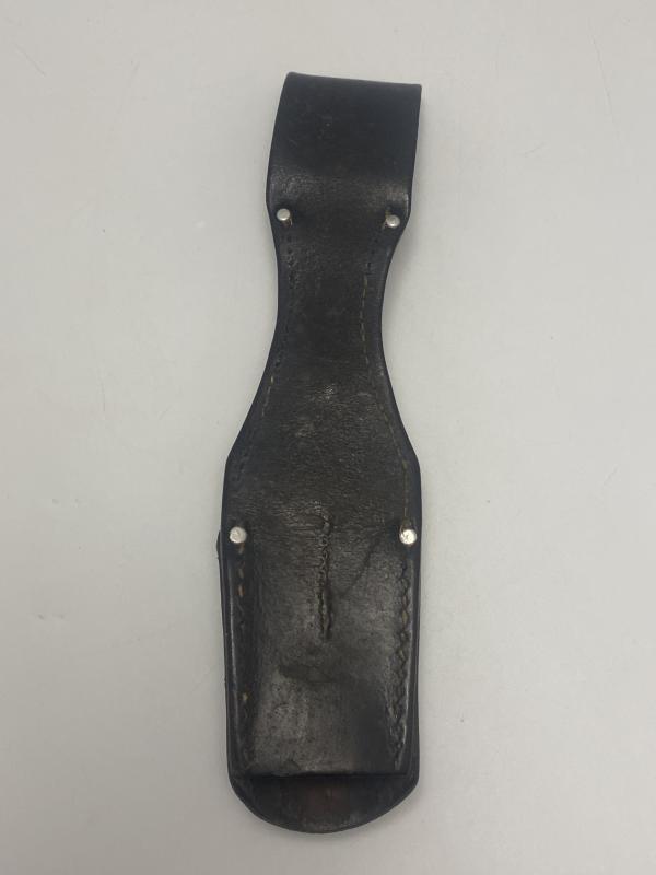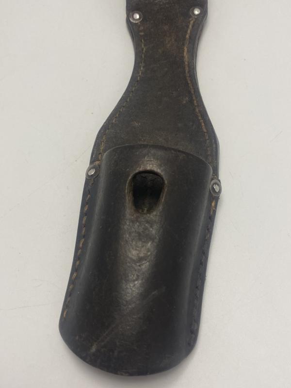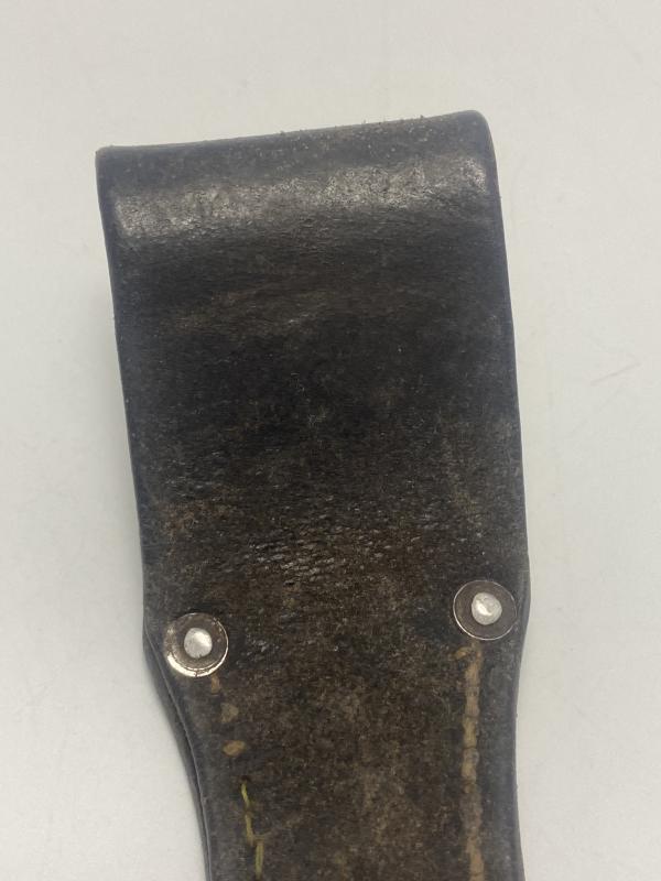 Original German black leather K98k bayonet frog. In good used condition. No makers stamp visible. Leather remains subtle.