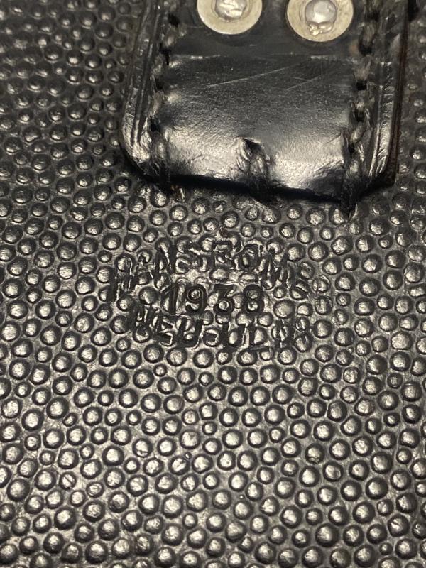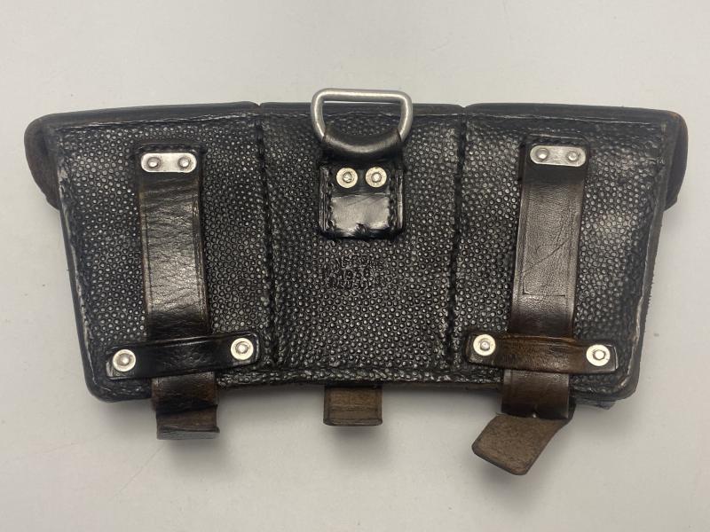 Original K98k Rifle ammo pouch, two of the three internal dividers are in place. Middle pocket lid displays a soldiers name. Clearly 1938 dated on the reverse.