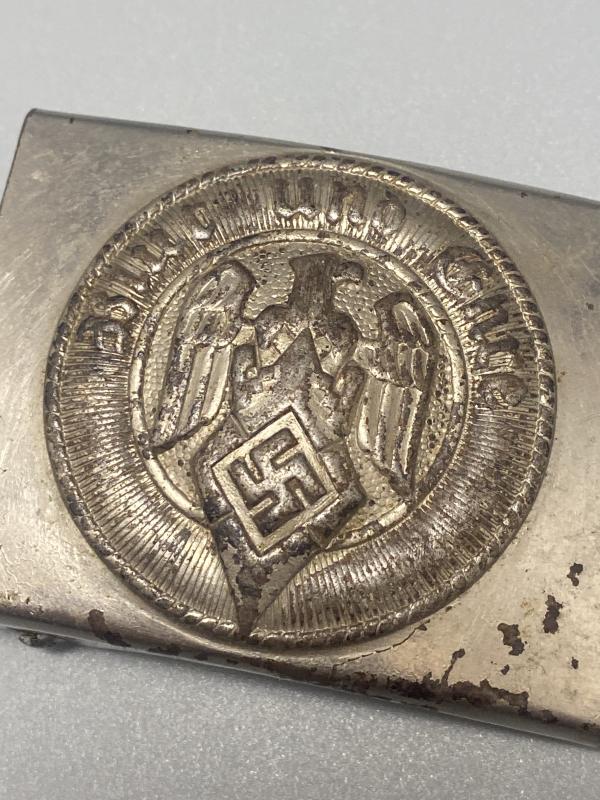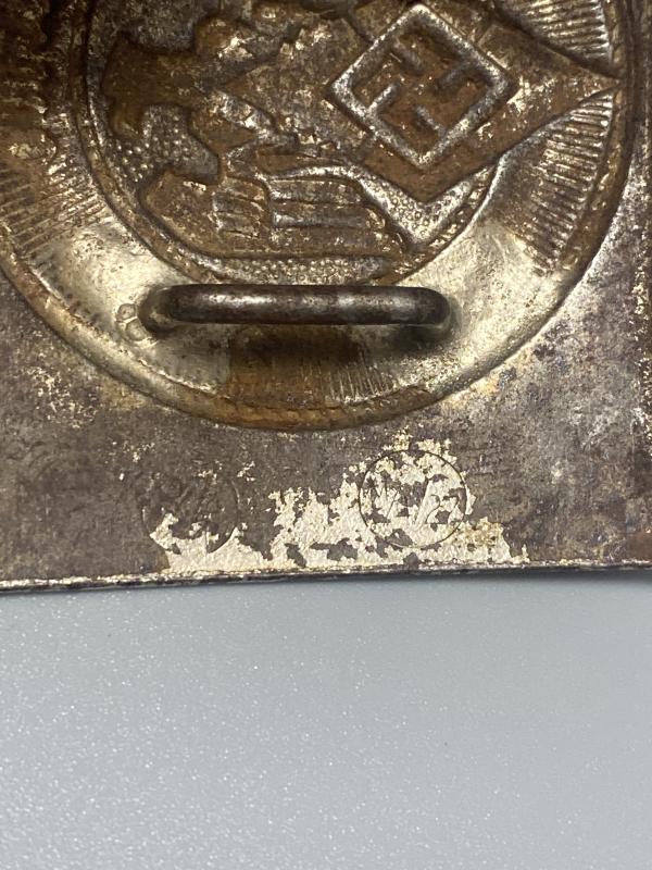 Original Overhoff nickel plated HJ buckle. Faint RZM M4/27 mark. Good amount of original finish remaining.