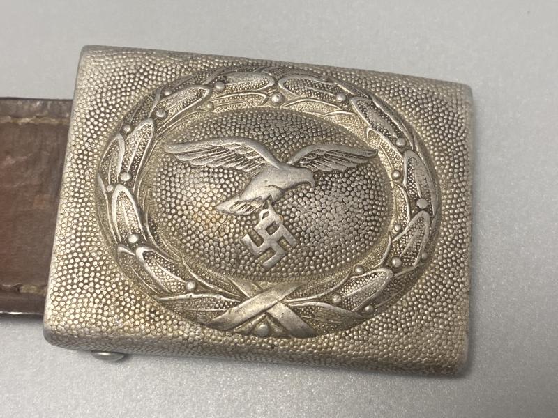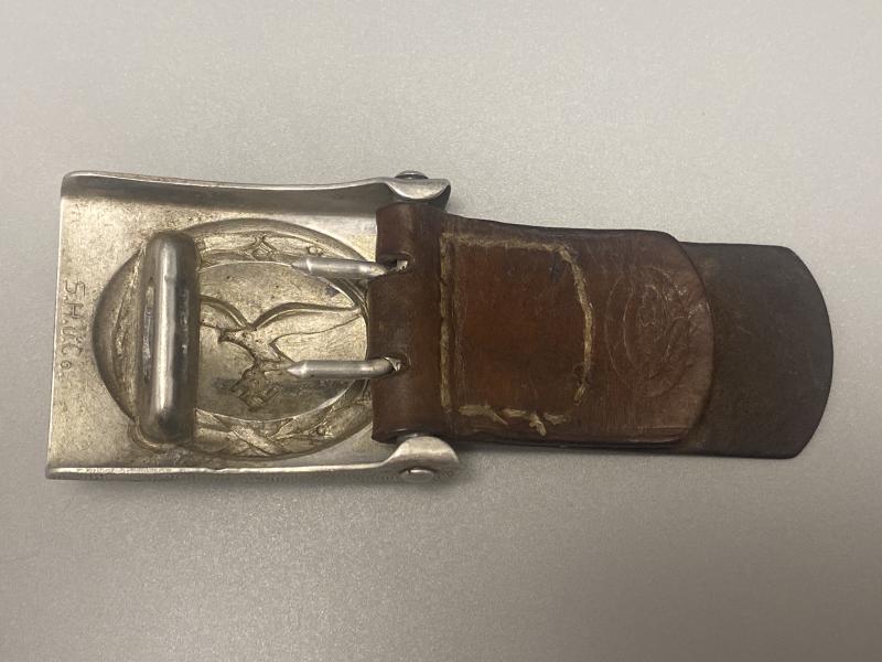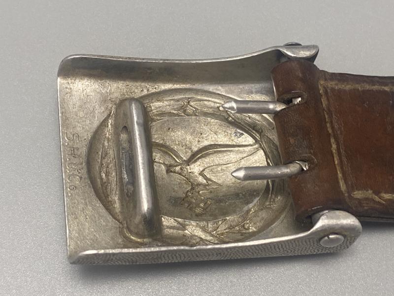 Original 1939 dated Luftwaffe belt buckle and tab attributed to the manufacturer Sohni Heubach & Co. Nice field worn piece.