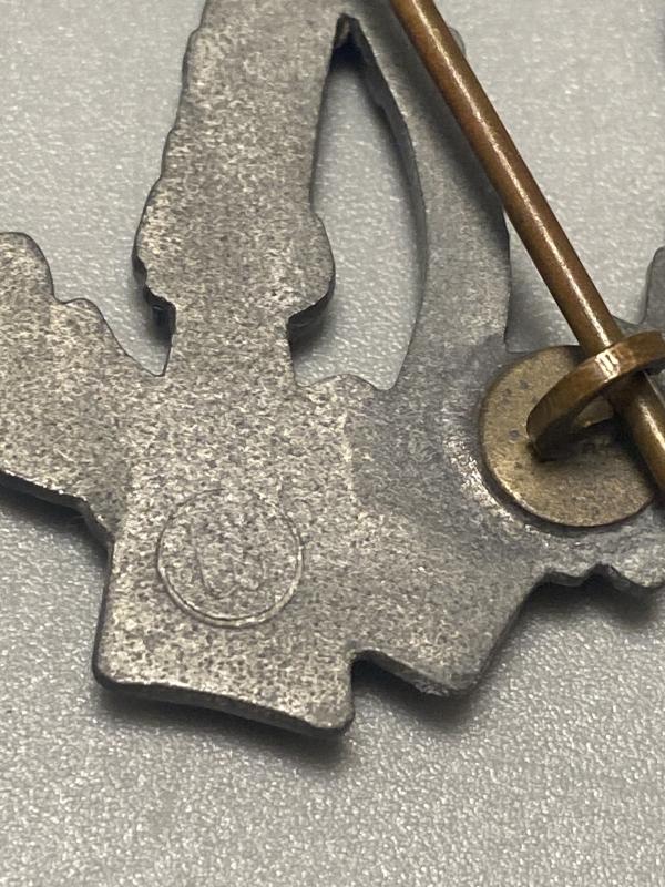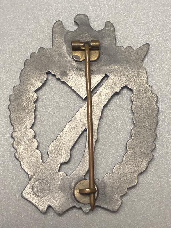 Original Silver Infantry assault badge maker marked Ferdinand Weidmann. Almost perfect finish, an example with correct pin, hinge and hook set up attributed to this manufacturer.