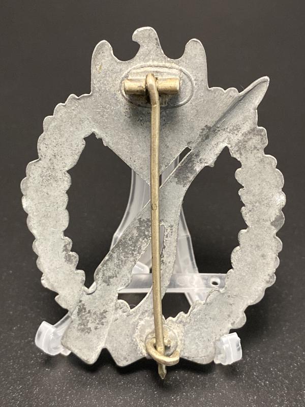 Original German silver infantry assault badge made by E.Muller. A good example with correct pin, hinge and hook set up attributed to this manufacturer.