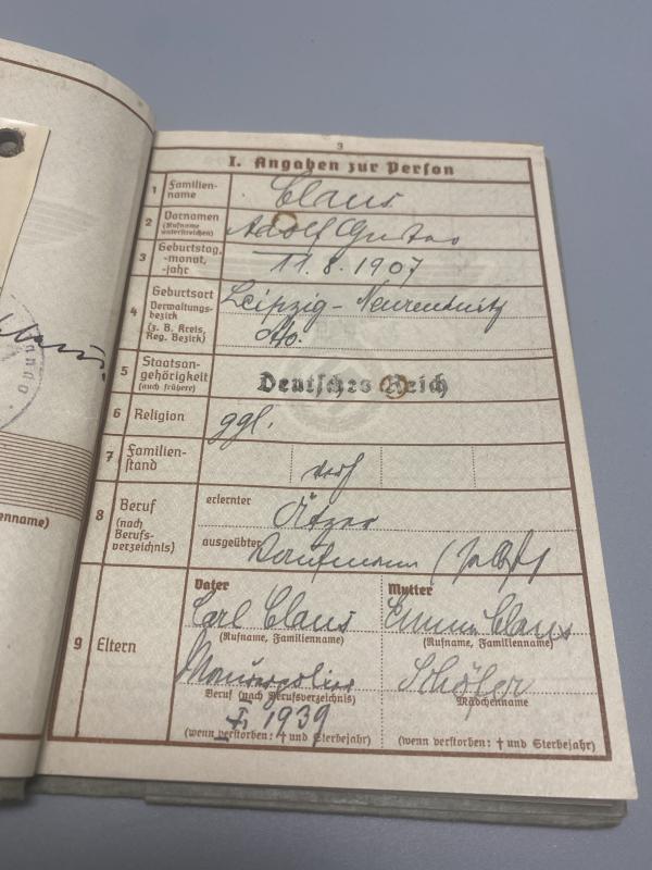 German Army Wehrpass Adolf Claus Army Reservist