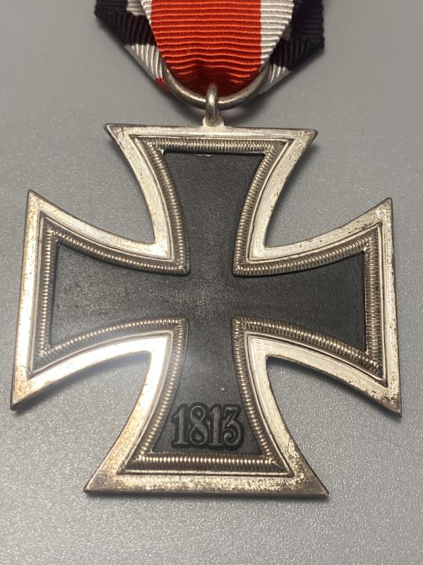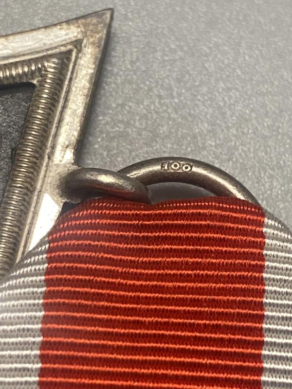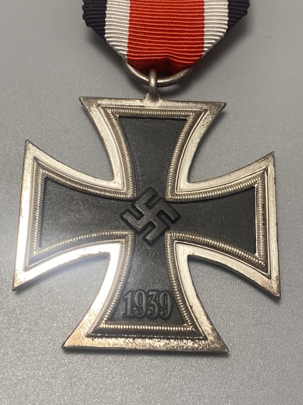 Original WW2 German Iron Cross second class maker marked 100 for Wachtler and Lange. In very good condition with ribbon.