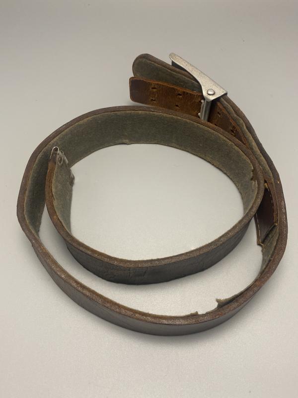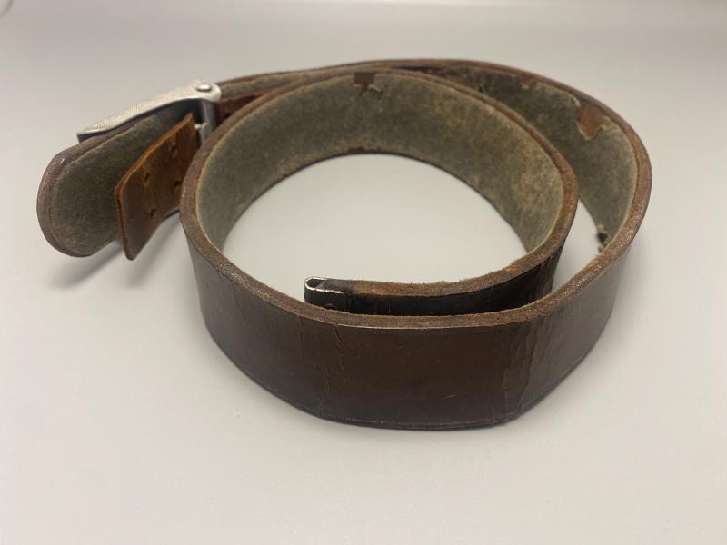 Original WW2 Luftwaffe belt and buckle as worn on parade. Brown belt with felt lining. Some mothing to the felt, the leather has got some minor cracking due to age. Luftwaffe buckle is a standard parade model. Tongue of the belt has the stamp Flakregt.26. A nice piece, parade belts are very rarely found in brown. Belt is fully original without any alterations or repairs.