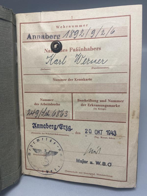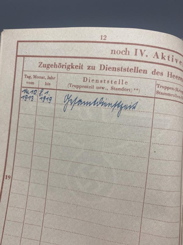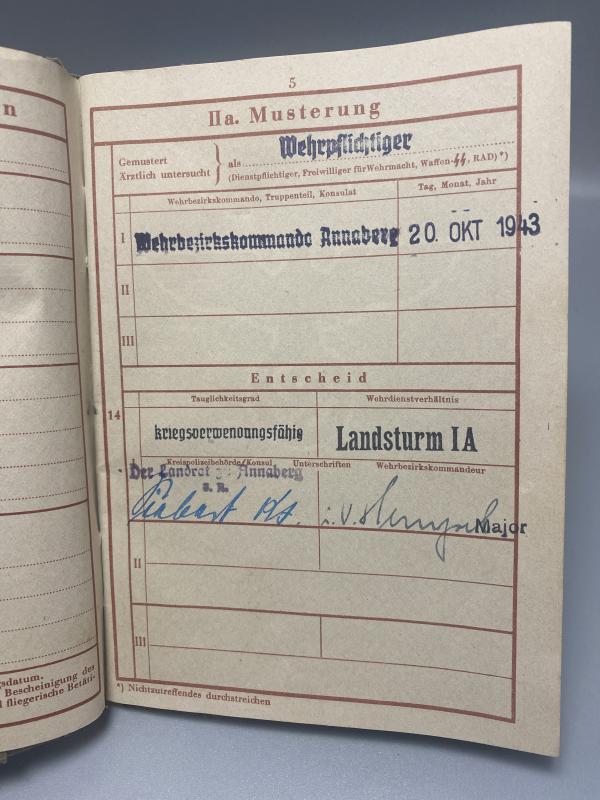 Original German army wehrpass for a man serving in the landsturm. Previous WW1 service mentioned.