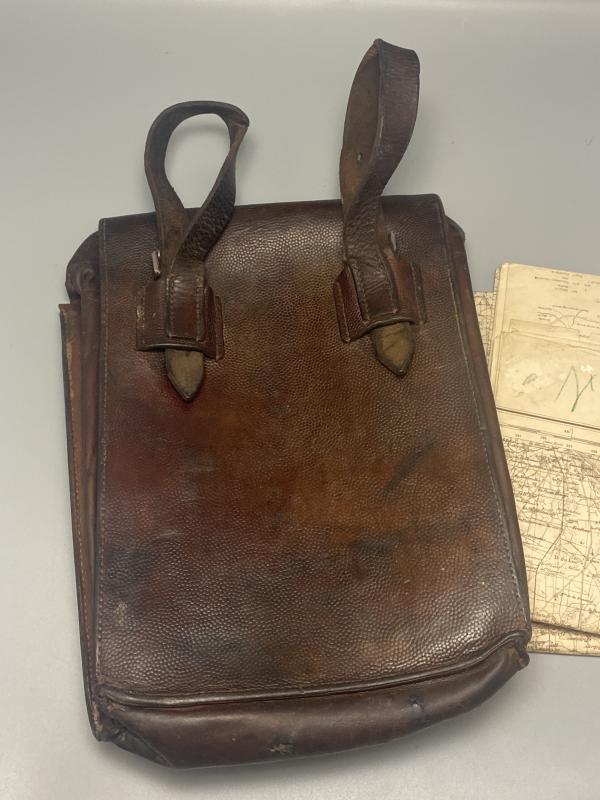 German Brown Leather Map Case 1944 St.Nazaire Pocket