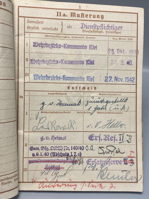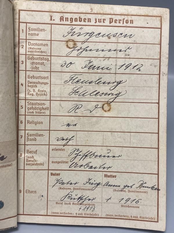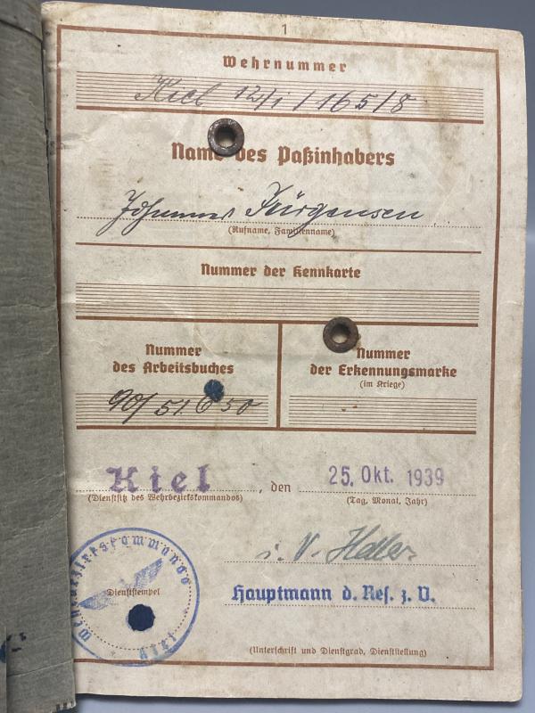 German Army Wehrpass Johannes Jürgensen Army Reservist