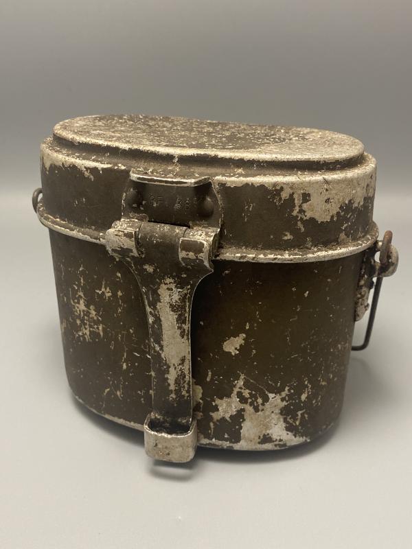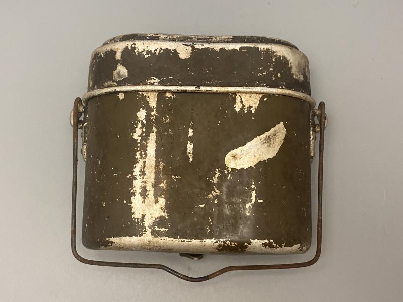 Original WW2 German army mess tin in original olive green paint. Lid and tub are missing matched and dated 1939 and 1941. A good quality display piece.